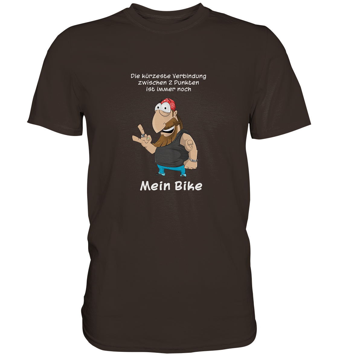 Der Dude meint: Die kürzeste Verbindung zwischen 2 Punkten ist immer noch mein Bike. Das Motiv-Shirt ist definitiv ein Hingucker und jeder Biker versteht, was damit gemeint ist. In vielen Farben und Größen.