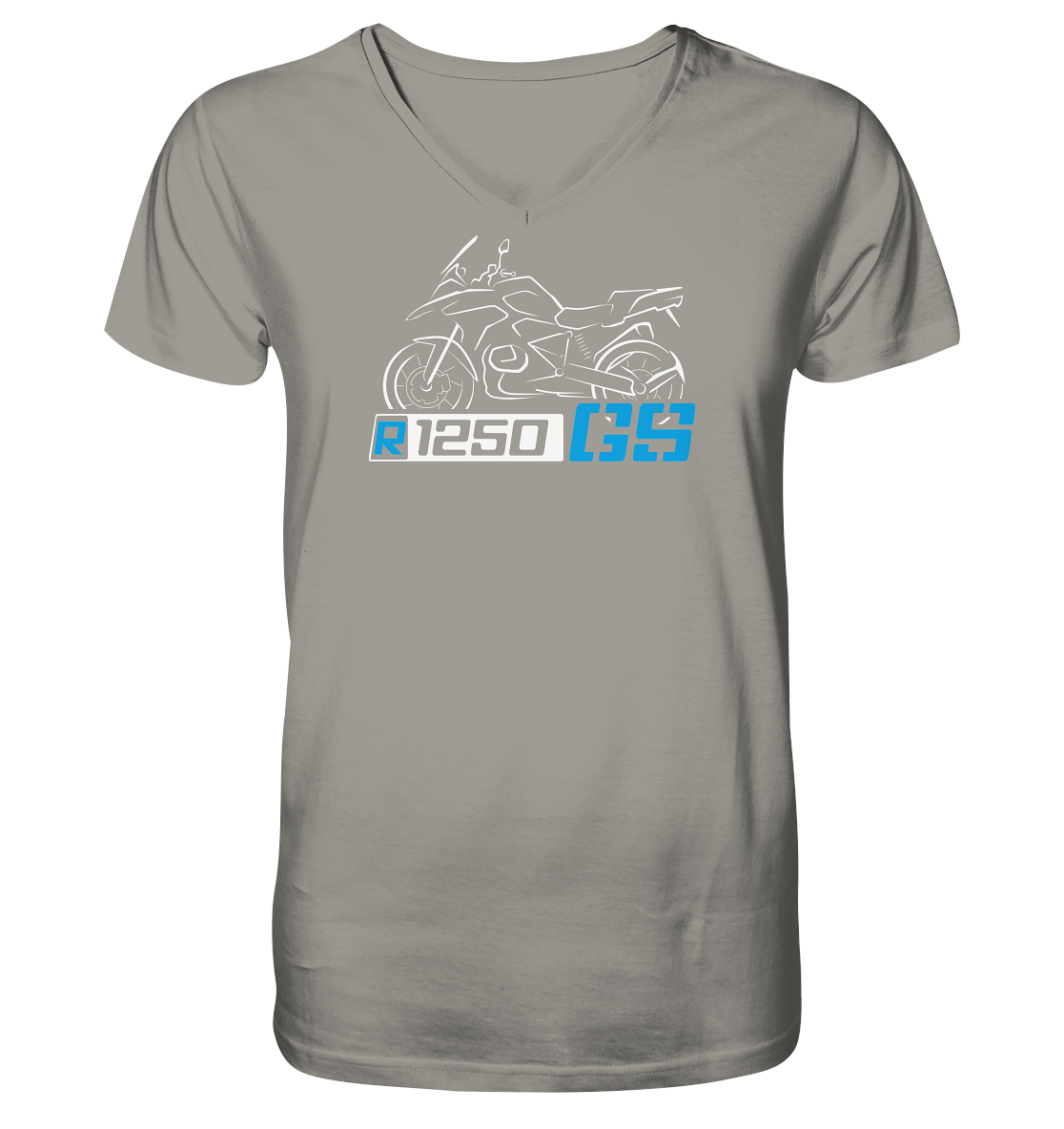 R1250GS Schriftzug mit stilisiertem Motorrad - V-Neck Shirt.