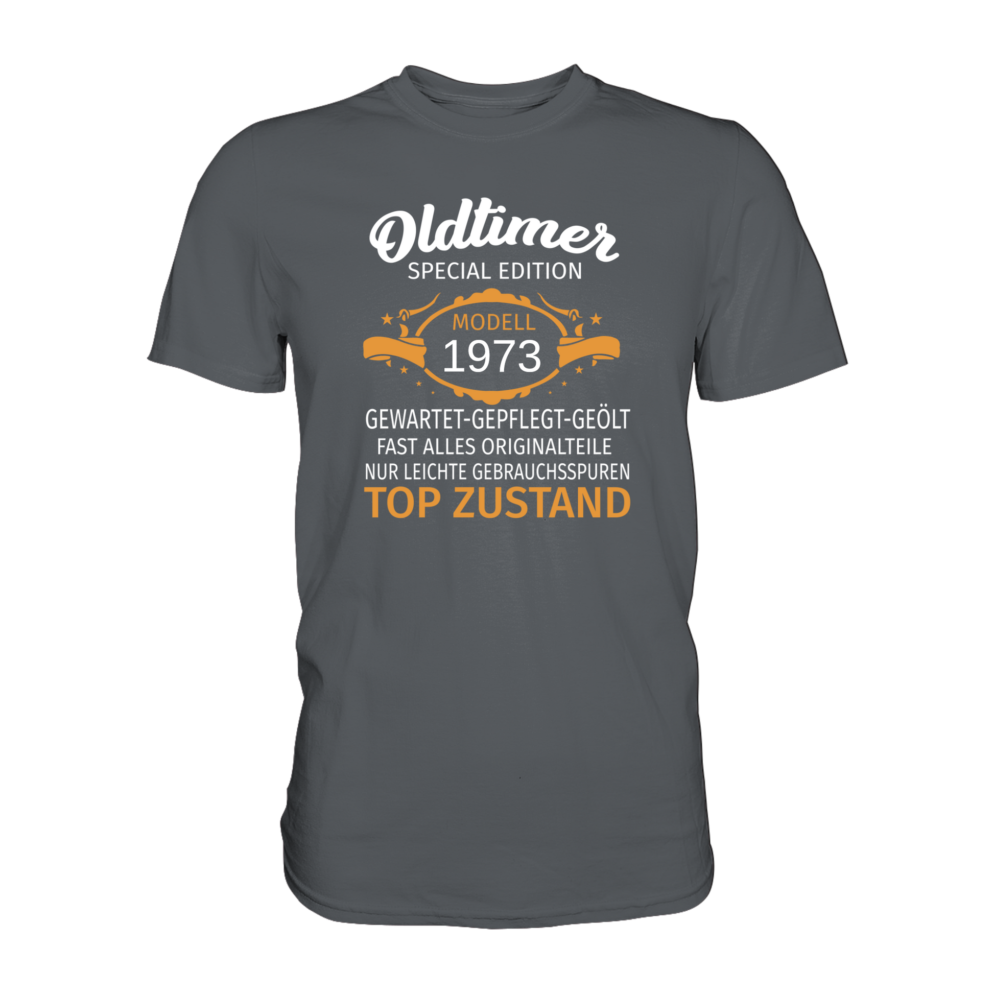 Personalisierbar - Oldtimer, gewartet, gepflegt, geölt - Premium unisex Shirt.